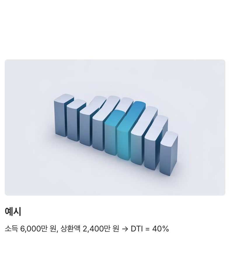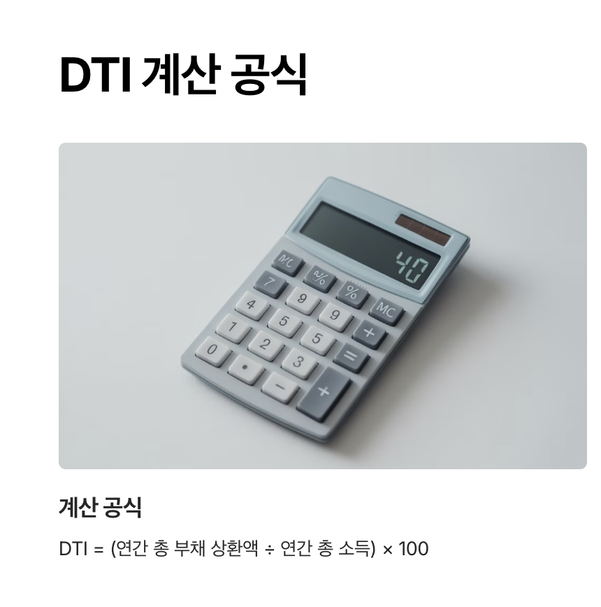 DTI = (연간 총 부채 상환액 ÷ 연간 총 소득) × 100