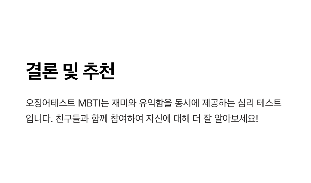 - 링크 공유: 자신의 결과와 함께 테스트 링크를 공유하여 친구들의 참여를 유도하세요.