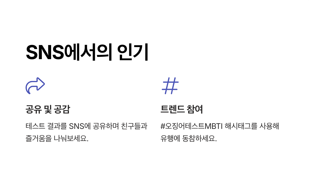 SNS를 통해 결과를 공유하면 더 많은 사람들과 이야기를 나누고, 테스트의 즐거움을 배가시킬 수 있습니다.