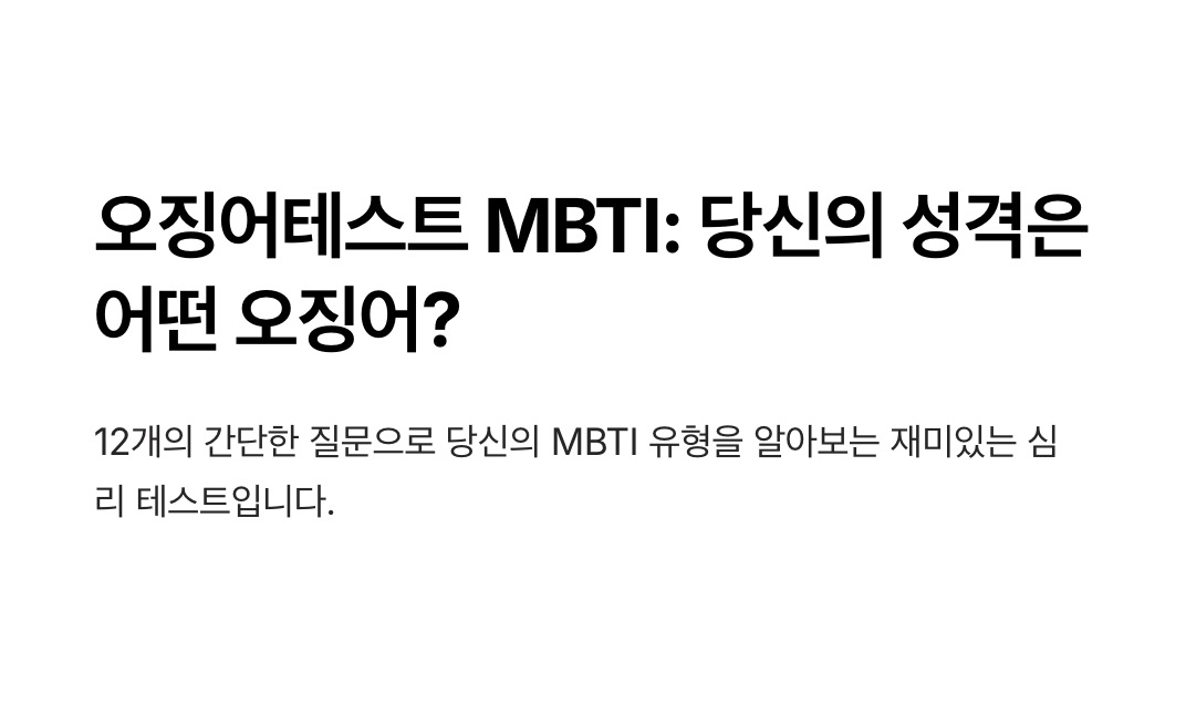 오징어테스트 MBTI에 참여하려면 아래 링크를 클릭해 시작할 수 있습니다.