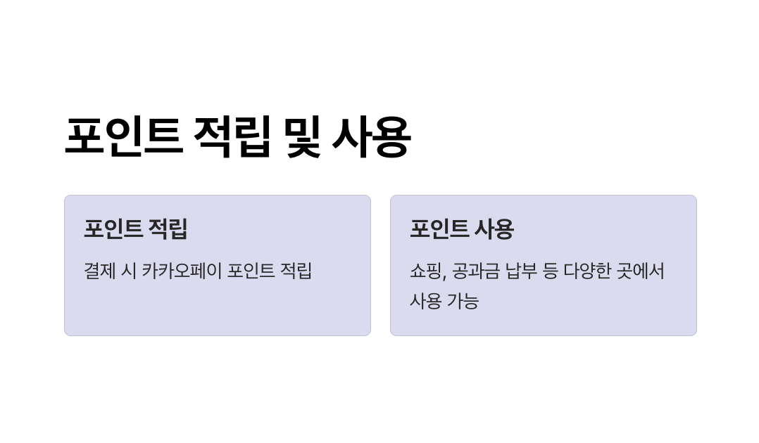 카카오페이로 결제하면 카카오페이 포인트가 적립되며, 다양한 곳에서 활용 가능합니다.