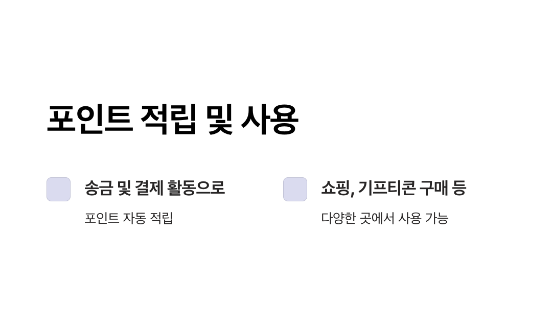 - 결제, 송금, 이벤트 참여 시 포인트가 적립됩니다.