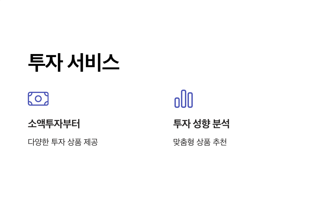 - 소액으로 시작할 수 있는 펀드, 주식, 채권 등 투자 상품을 제공.