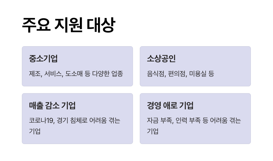 - 주요 대상 업종은 제조업, 도소매업, 서비스업 등입니다.