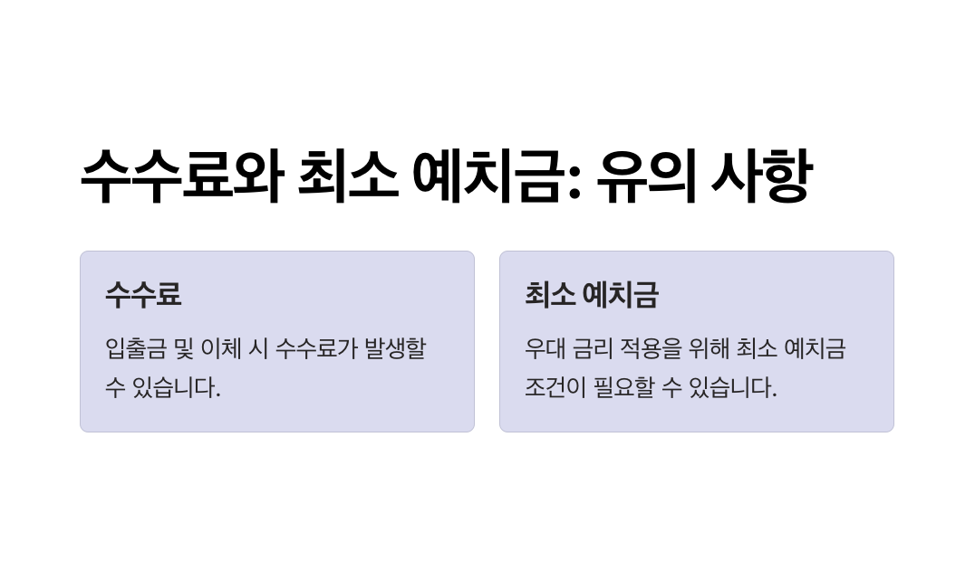 - 수수료 부담: 일부 상품은 잦은 입출금 시 수수료 발생 가능