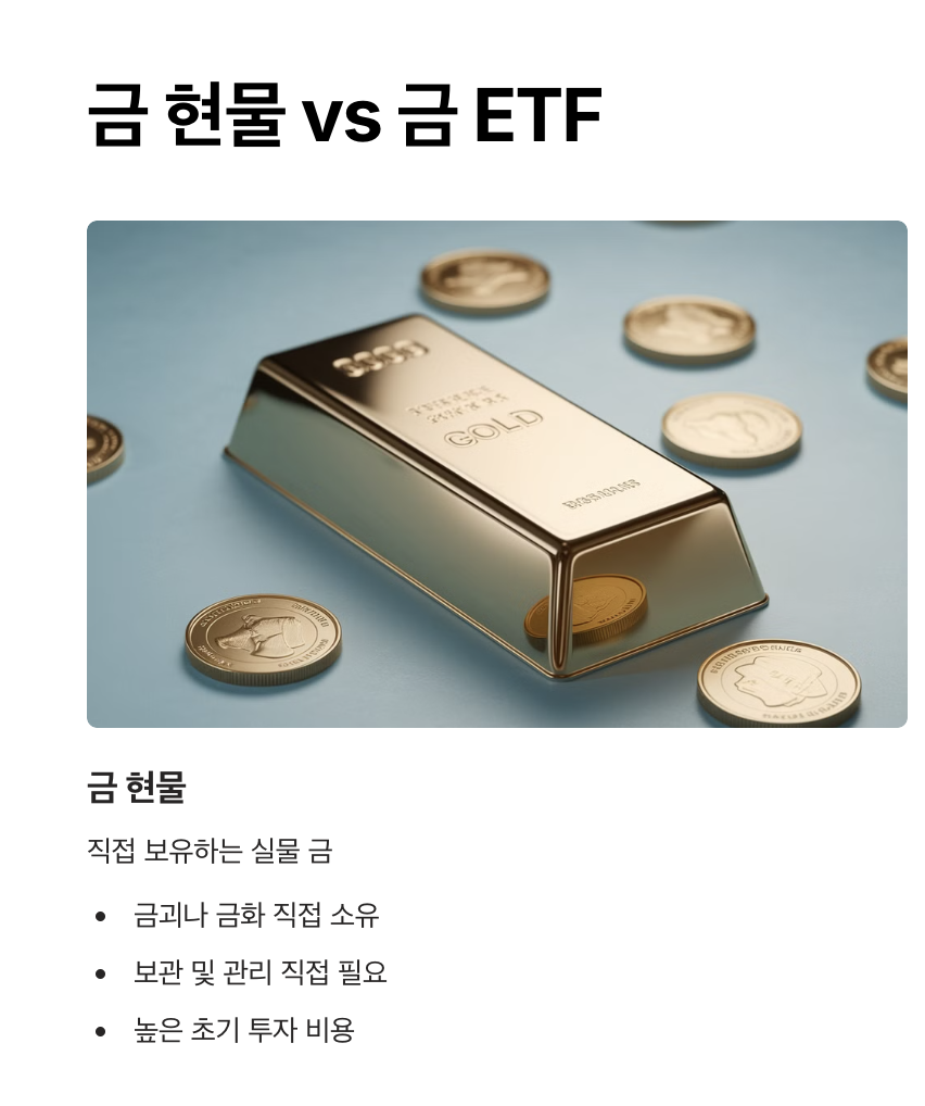 | 구분 | 금 현물 투자 | 금 ETF 투자 |