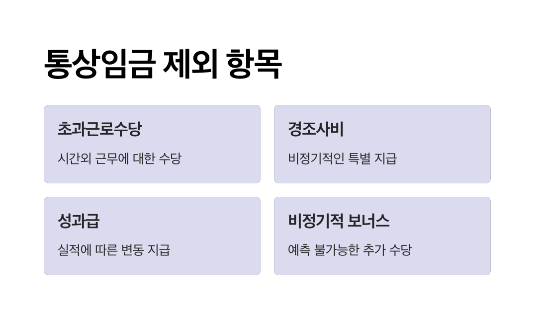 - 정기 상여금: 매월, 매분기 또는 매년 일정하게 지급되는 상여금(단, 고정성 요건 충족 시)