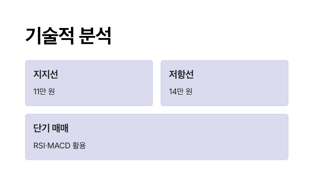 - 단기 저항선: 14만 원 (돌파 시 추가 상승 가능).