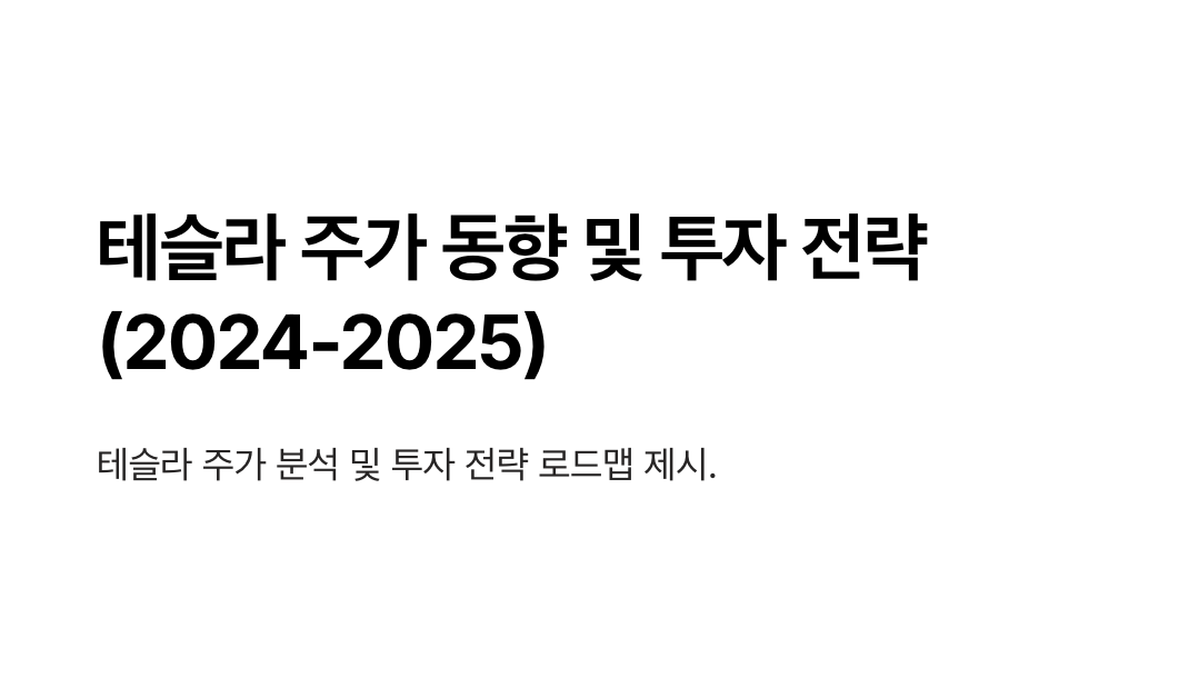 테슬라 주식 투자는 장기적으로 높은 성장 가능성이 있지만, 단기적으로는 시장 환경 변화에 따른 리스크가 존재합니다. 따라서, 최신 시장 동향과 실적 발표를 지속적으로 확인하면서 전략적으로 투자해야 합니다.