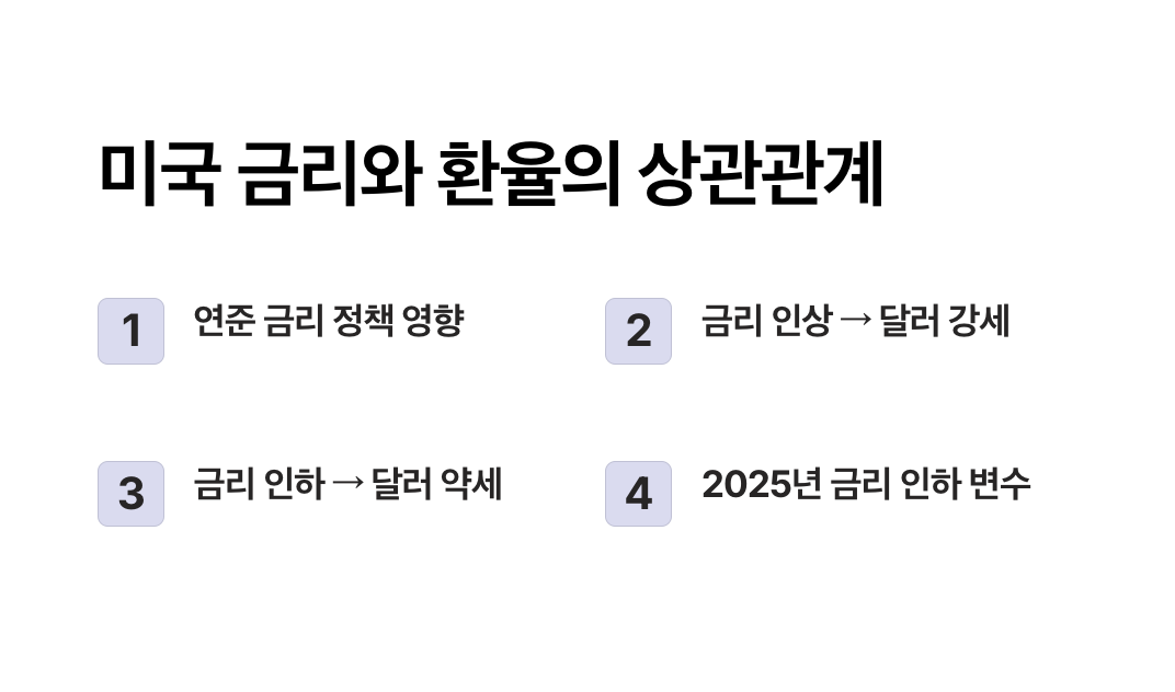 - 금리 인상 시: 시장에 유동성이 줄어들고, 달러 가치 상승 → 원·달러 환율 상승