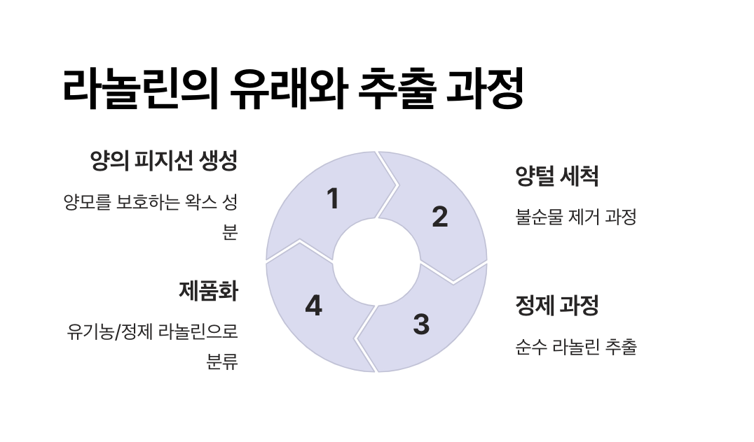 - 양털에서 자연적으로 생성되는 지질 성분으로, 양의 피부와 털을 보호하는 역할을 합니다.