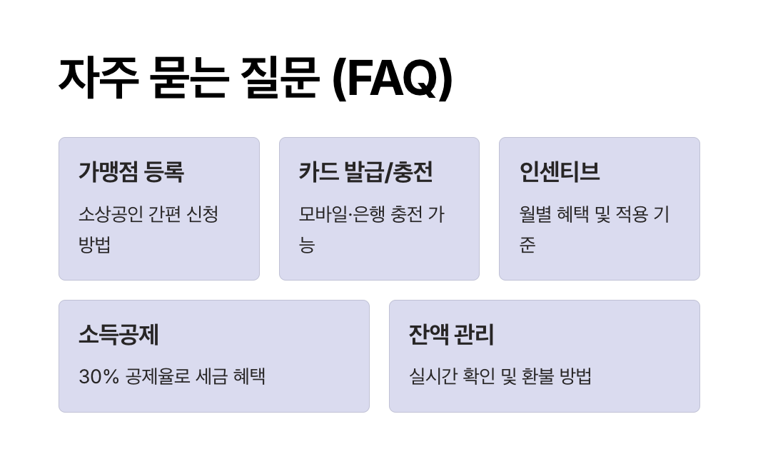 - 지역 내 소상공인 음식점은 거의 모두 사용 가능하며, 일부 유명 프랜차이즈 매장도 지역별 가맹점 등록 여부에 따라 가능합니다.
