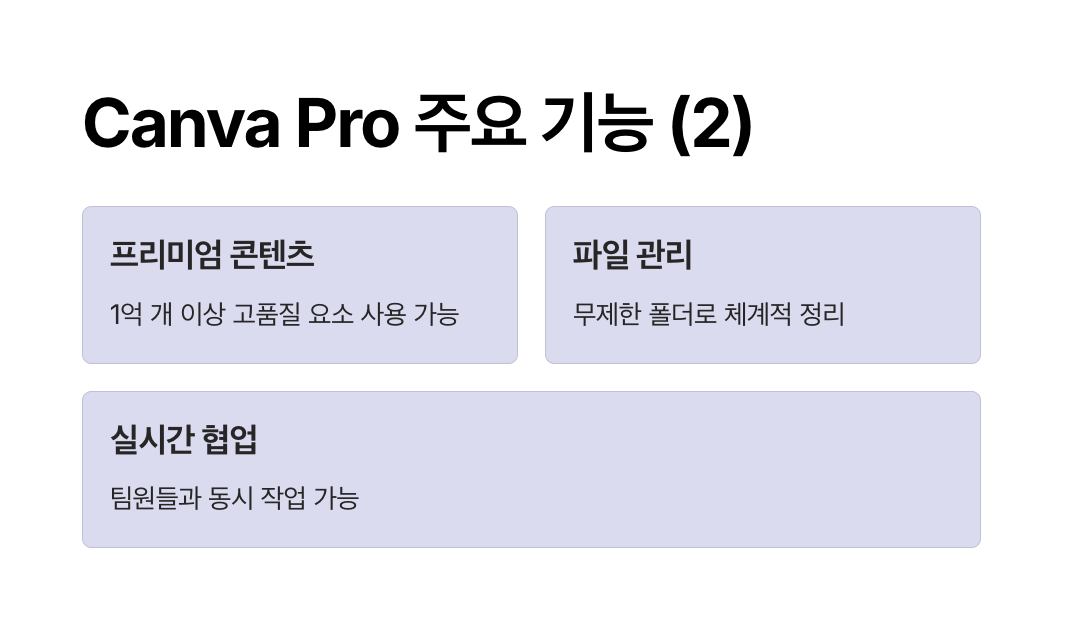 Canva Pro는 무료 버전에 비해 다음과 같은 확장된 기능을 제공합니다.