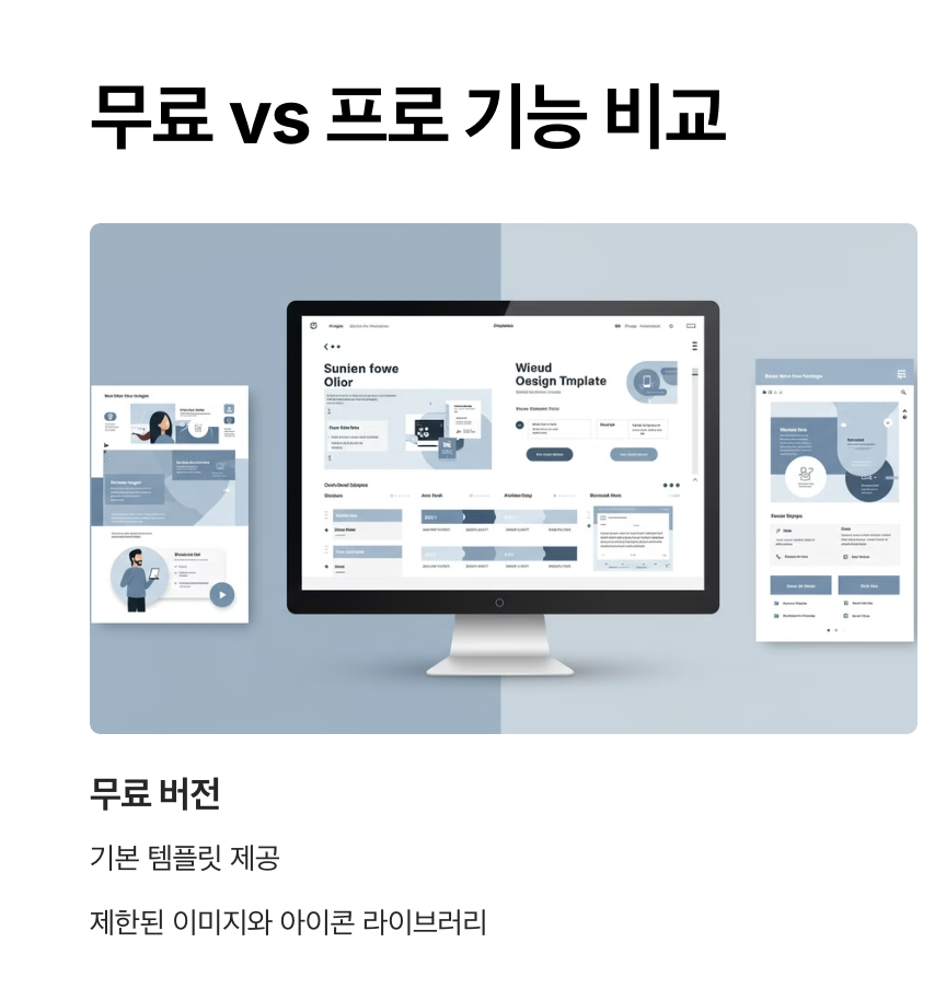 - 기본 템플릿 제공: 다양한 무료 템플릿 사용 가능하지만, 일부 프리미엄 템플릿은 제한됨