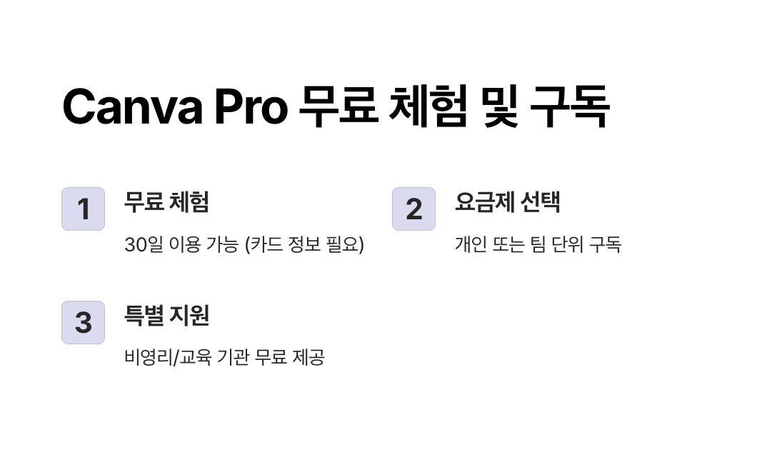 - Canva 공식 웹사이트에서 무료 체험 신청 가능