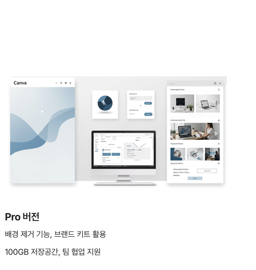 Canva Pro는 디자인 작업의 효율성과 전문성을 높이기 위한 다양한 프리미엄 기능을 제공합니다. 배경 제거 기능, 브랜드 키트, 팀 협업 기능, 클라우드 저장소 등은 SNS 마케팅 담당자, 콘텐츠 크리에이터, 스타트업 운영자들에게 특히 유용합니다.
