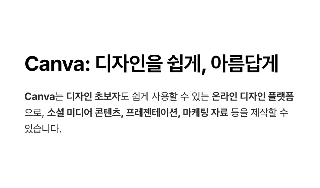 - 기본적인 디자인 기능 제공: 텍스트 추가, 색상 변경, 도형 활용 가능