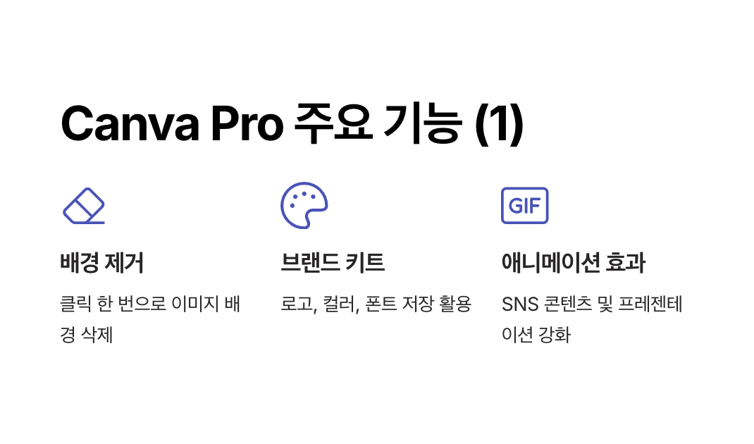 - 필요성: 기존에는 포토샵 등의 전문 프로그램이 필요했지만, Canva Pro에서는 클릭 한 번으로 간편하게 처리 가능