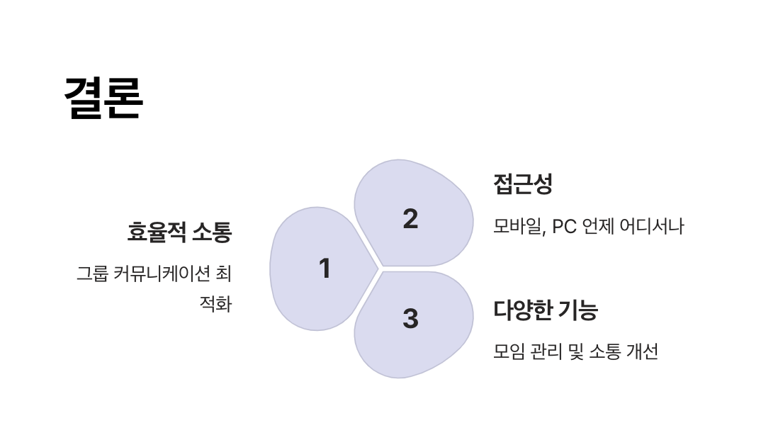 - 모임 일정 관리: 캘린더 기능을 활용해 행사 일정 및 모임 계획 공유