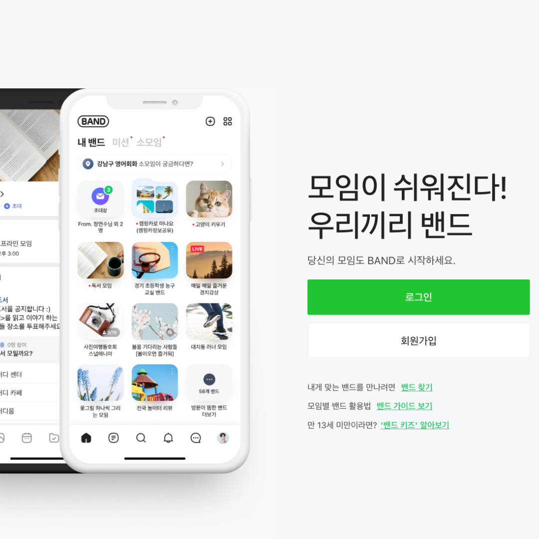 - 설치 완료 후, 네이버 계정으로 로그인하여 그룹을 생성하거나 기존 밴드에 가입할 수 있습니다.