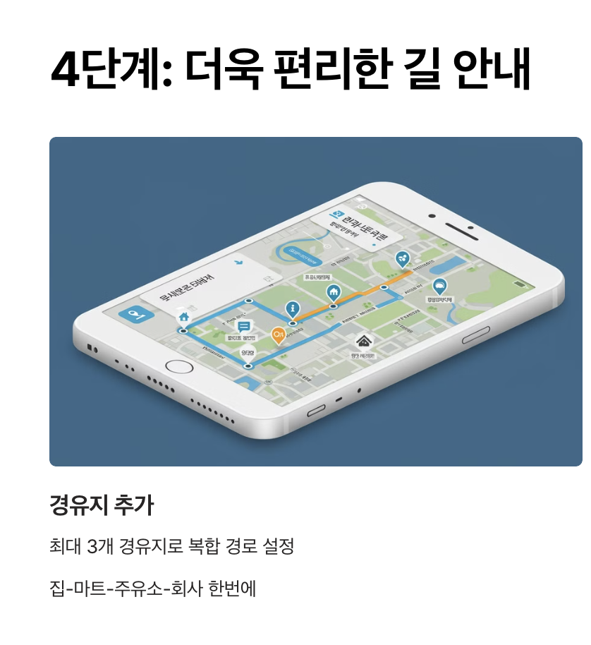 - 최대 3개의 경유지를 추가하여 여러 장소를 거쳐 이동 가능