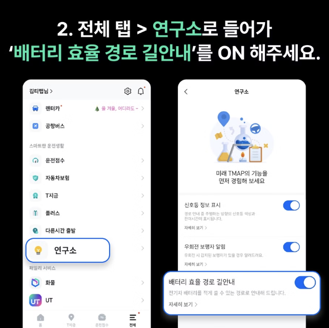 - 전기차 운전자의 경우 충전소 연동 기능 활용 가능