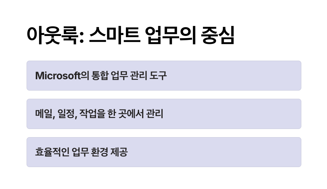 특히 직장인과 대학생에게는 아웃룩 사용법을 익히는 것이 업무 효율과 시간 관리에 큰 도움이 됩니다.