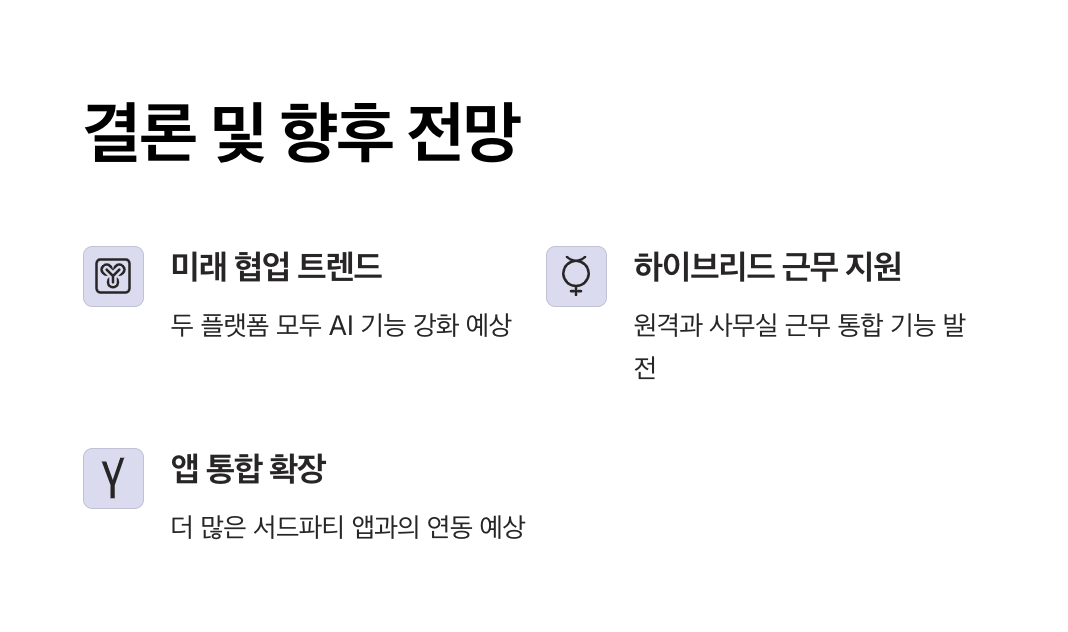 | 업무 연결성 | 회의 중심 | 회의 + 협업 완전 통합 |
