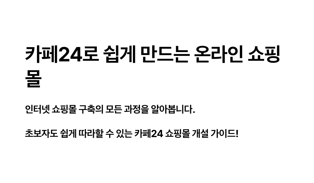 이번 글은 카페24 초보자 가이드로, 카페24 사용법을 처음 접하는 분도 따라 할 수 있도록 회원가입부터 쇼핑몰 생성, 디자인 설정, 상품 등록, 결제 및 배송 세팅까지 전 과정을 단계별로 설명해 드리겠습니다.