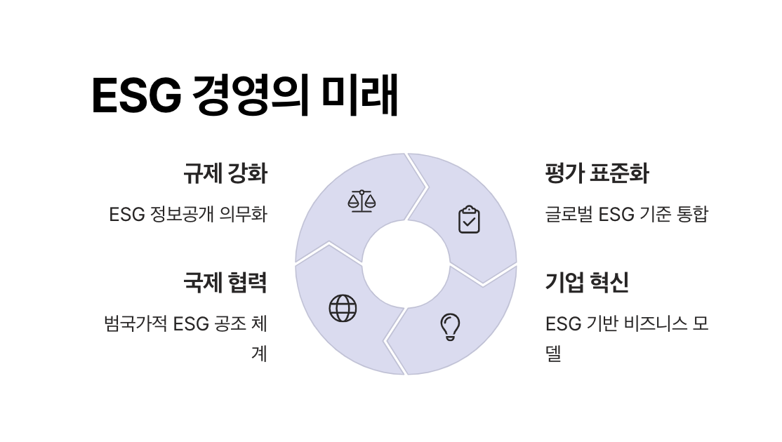 지금까지 살펴본 것처럼 ESG 경영은 단순한 트렌드를 넘어, 기업 생존의 필수 전략으로 자리 잡고 있습니다. 과거에는 재무성과만으로 기업 가치를 평가했다면, 이제는 지속가능성이 주요 투자 기준으로 자리 잡았습니다.