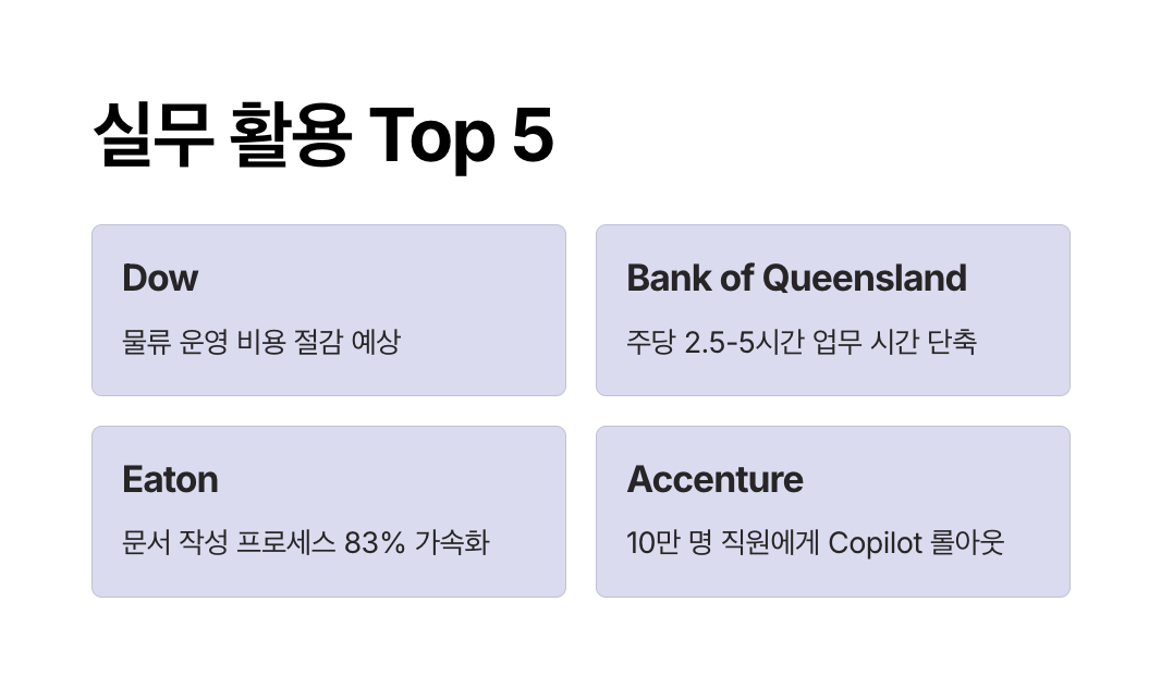 | 활용 우선순위 | 회의, 이메일, 문서초안 등 반복적인 업무부터 적용하는 것이 효과적 |