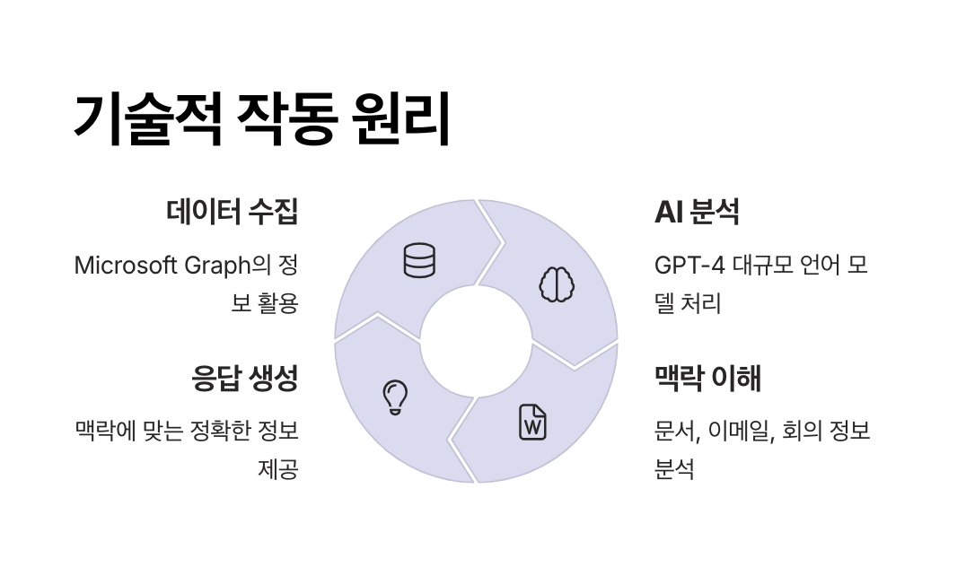즉, Copilot은 단순한 챗봇이 아니라, 사용자가 지금 하고 있는 업무를 이해하고 그에 맞는 실질적인 결과물을 생성하는 업무 파트너입니다.