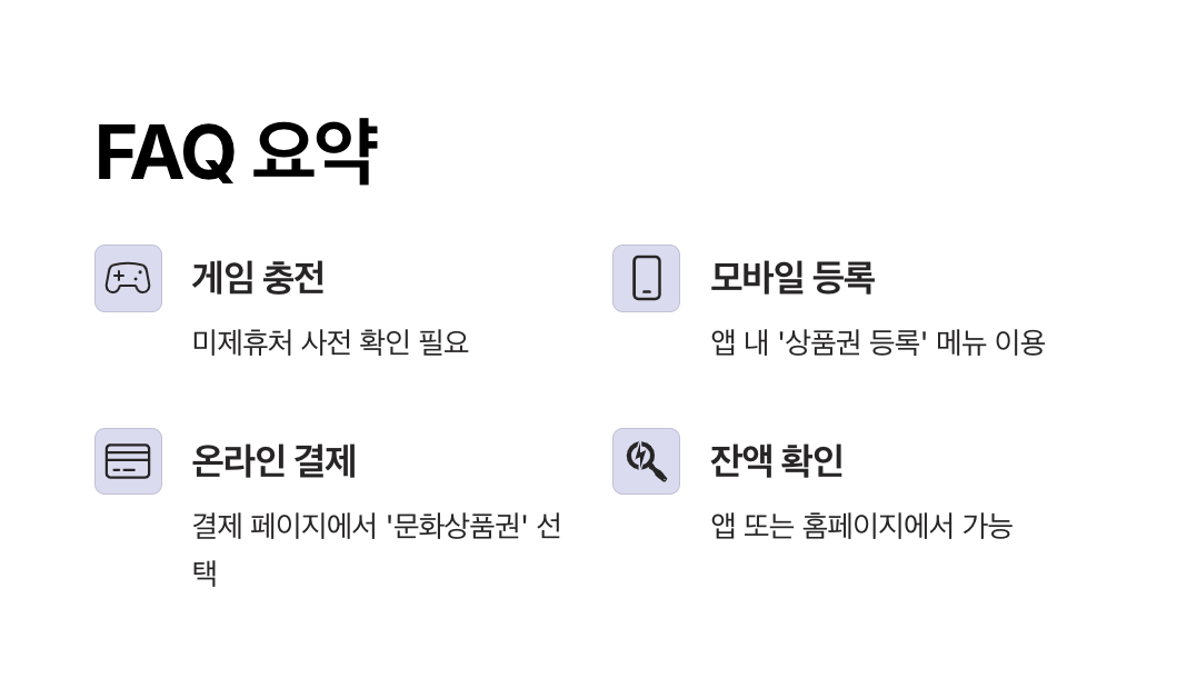 • 게임별로 제휴 여부가 다르므로, 결제 페이지에서 반드시 ‘문화상품권 사용 가능 여부’를 확인하세요.