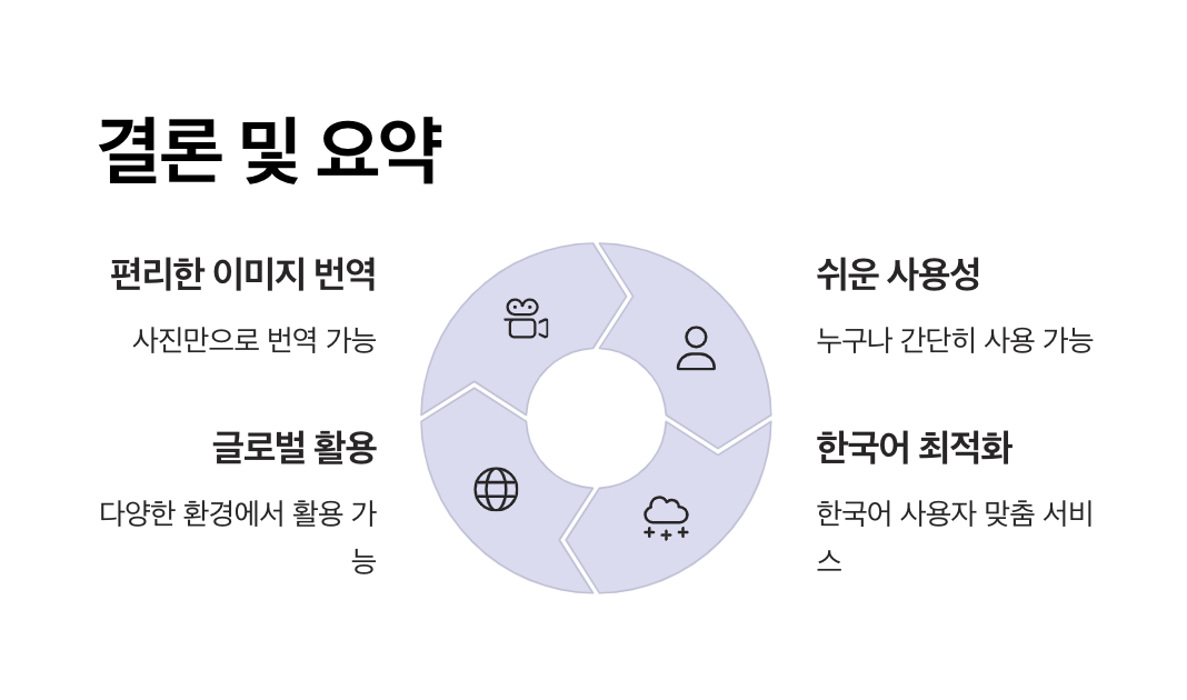 - 번역된 텍스트를 복사하거나 저장할 수도 있어 메모나 문서 정리에도 유용합니다.
