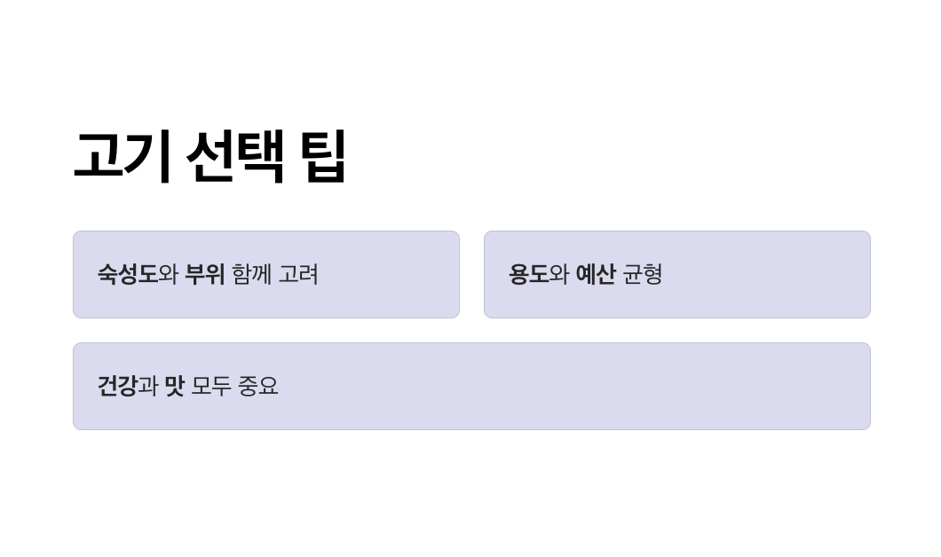 → 예시: 혈압이나 위장 질환이 있는 어르신이라면 2등급 고기처럼 담백한 부위가 더 적합할 수 있습니다.