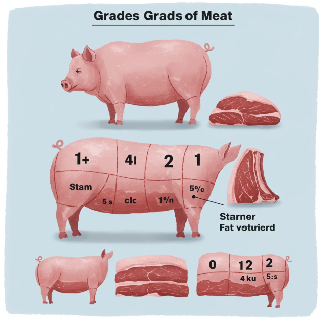 고기 등급은 마트나 정육점에서 파는 소고기나 돼지고기의 품질을 숫자나 기호로 나누어 표시한 것입니다. 이 등급은 단순히 고기를 비싸게 팔기 위한 것이 아니라, 소비자가 고기의 맛과 품질을 쉽게 판단할 수 있도록 도와주는 기준입니다.