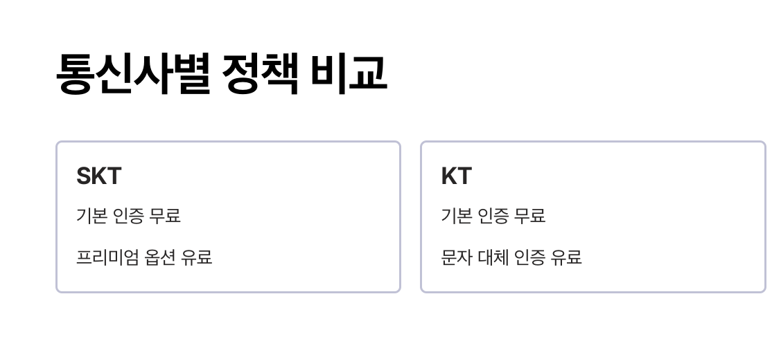 3. 통신사별 PASS 인증서 정책 비교
