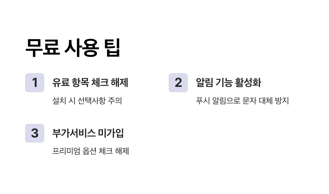 - 통신사 고객센터 또는 마이페이지에서 현재 가입된 부가서비스 확인 필수