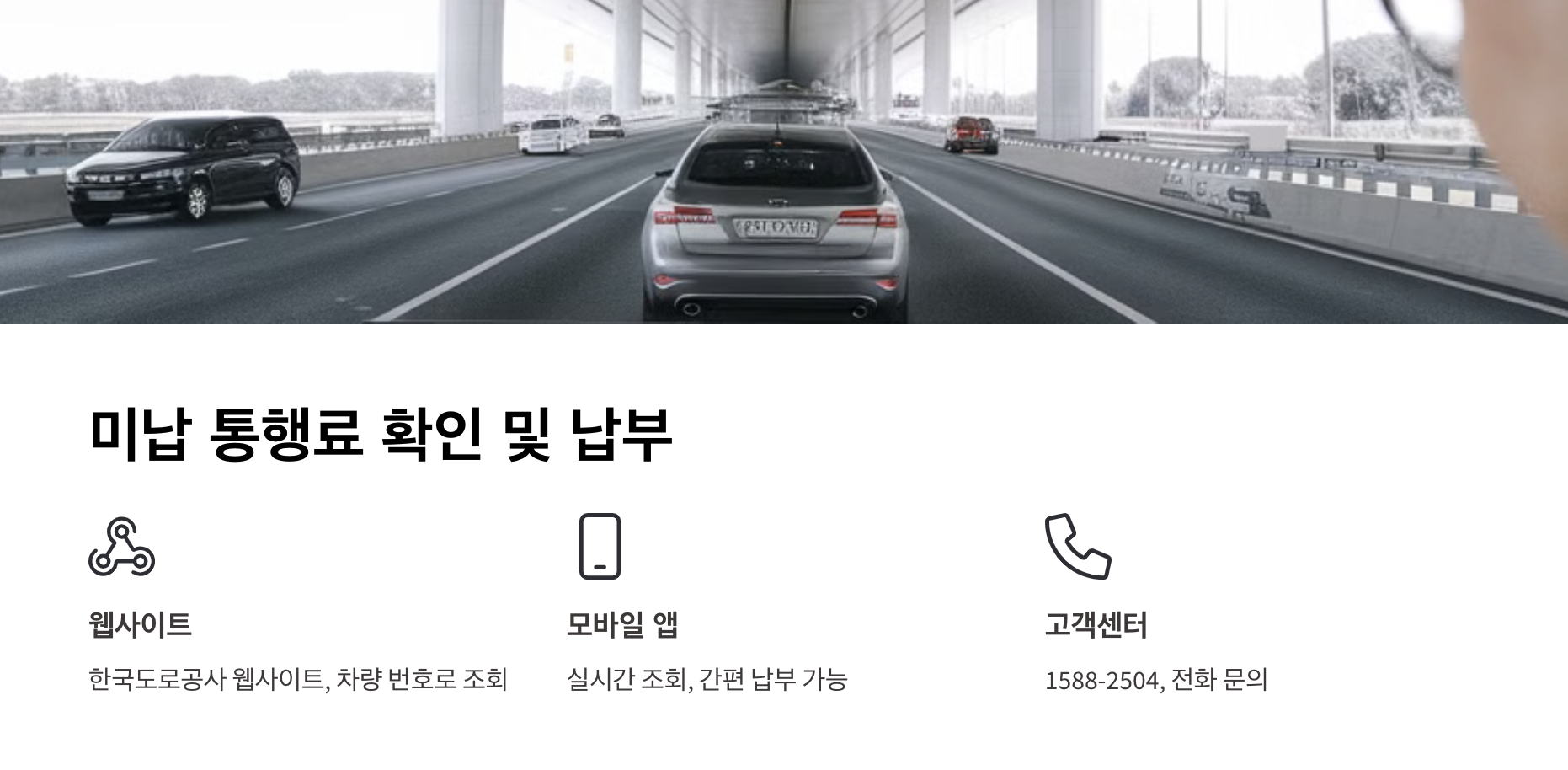고속도로 통행료 미납은 다음 방법으로 확인할 수 있습니다.