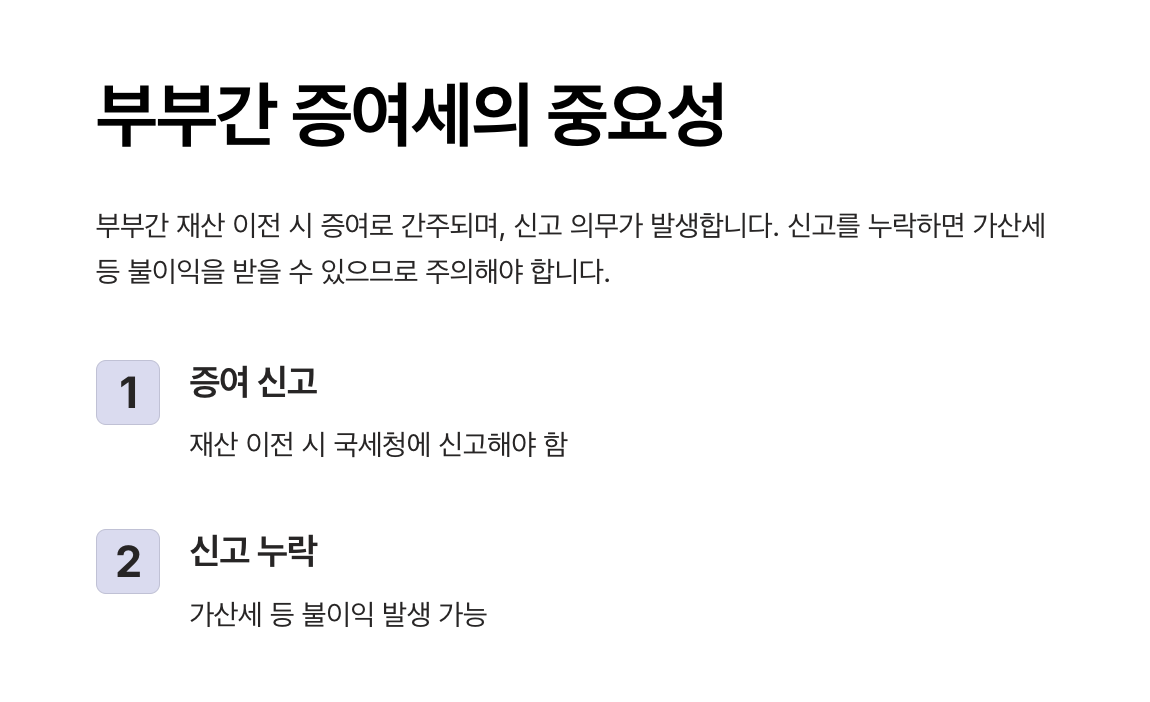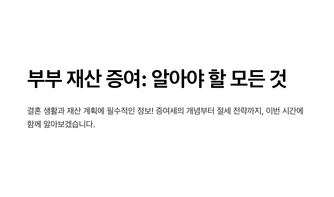부부는 법적, 경제적 연대 관계를 형성하기 때문에 재산을 공유하는 일이 자연스럽습니다. 그러나 세법 상에서는 이를 "증여 행위"로 간주할 수 있어 적절한 신고와 관리가 필요합니다.