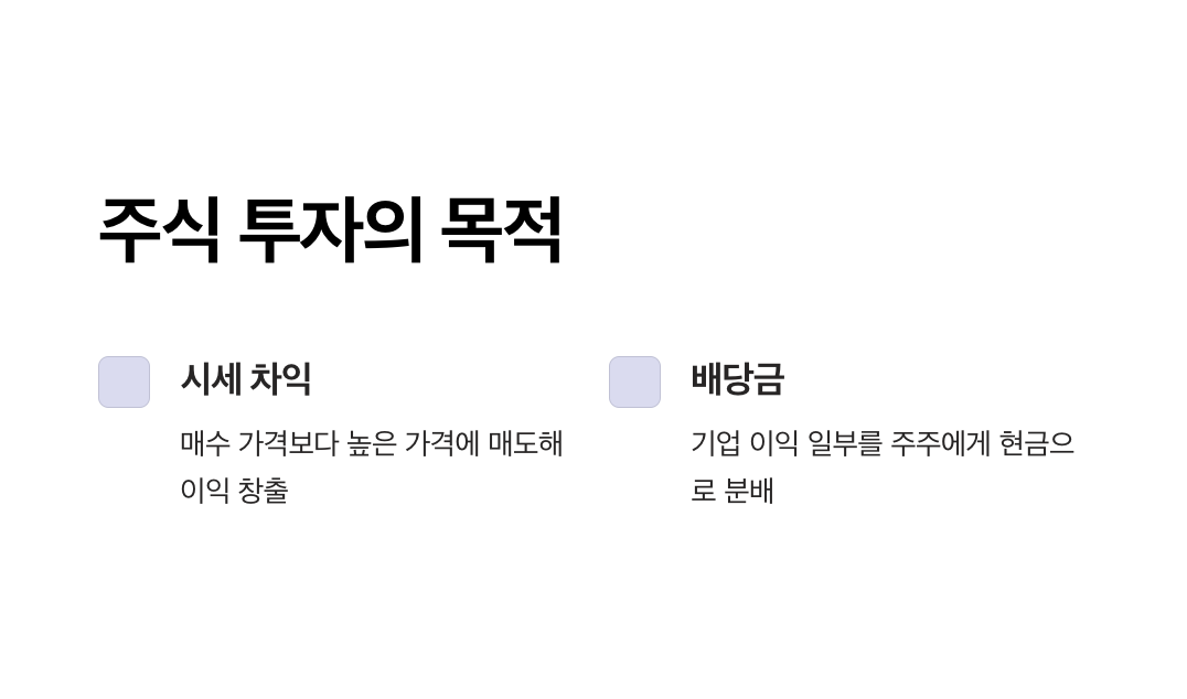 주식 투자로 얻을 수 있는 수익은 크게 두 가지로 나뉩니다.