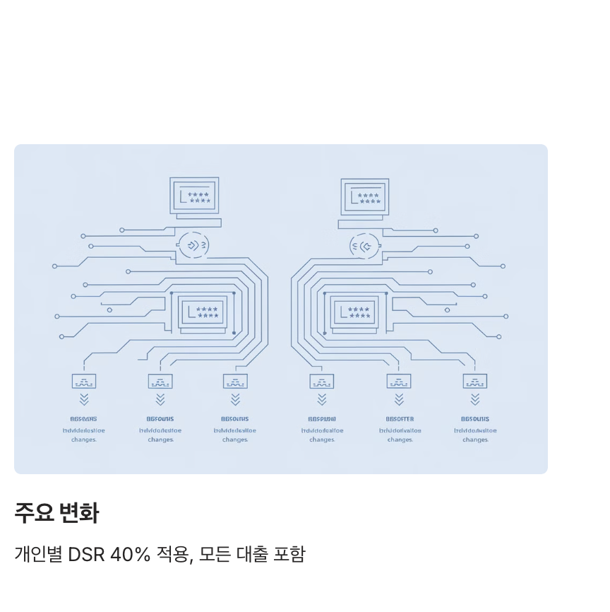 TIP: DSR 2단계 규제는 소득 대비 부채를 체계적으로 관리할 수 있도록 설계되었지만, 규제가 강해지면서 대출을 필요로 하는 사람들에게는 상당한 제약으로 작용하고 있습니다.