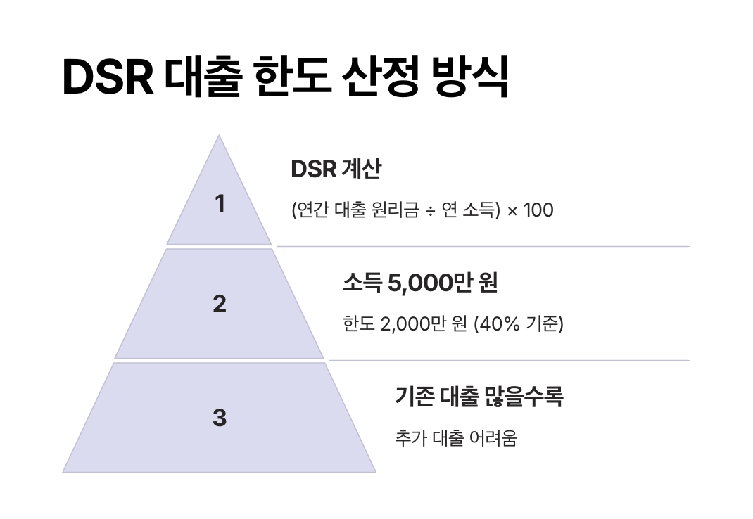 DSR = (연간 대출 원리금 상환액 ÷ 연간 소득) × 100