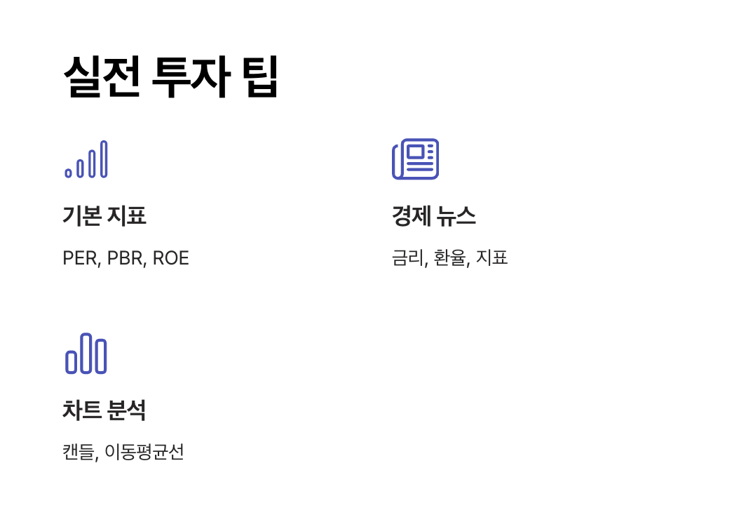 이번 글에서는 초보 투자자가 알아야 할 PER, PBR, ROE와 같은 기본 지표, 차트를 활용한 기술적 분석, 그리고 경제 뉴스와 시장 데이터를 해석하는 법까지 3단계로 나누어 쉽고 간단하게 설명해 보도록 하겠습니다.