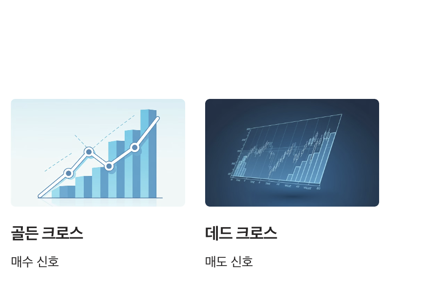 - 데드 크로스: 단기 이동평균선이 장기 이동평균선을 하향 돌파하면 매도 신호.