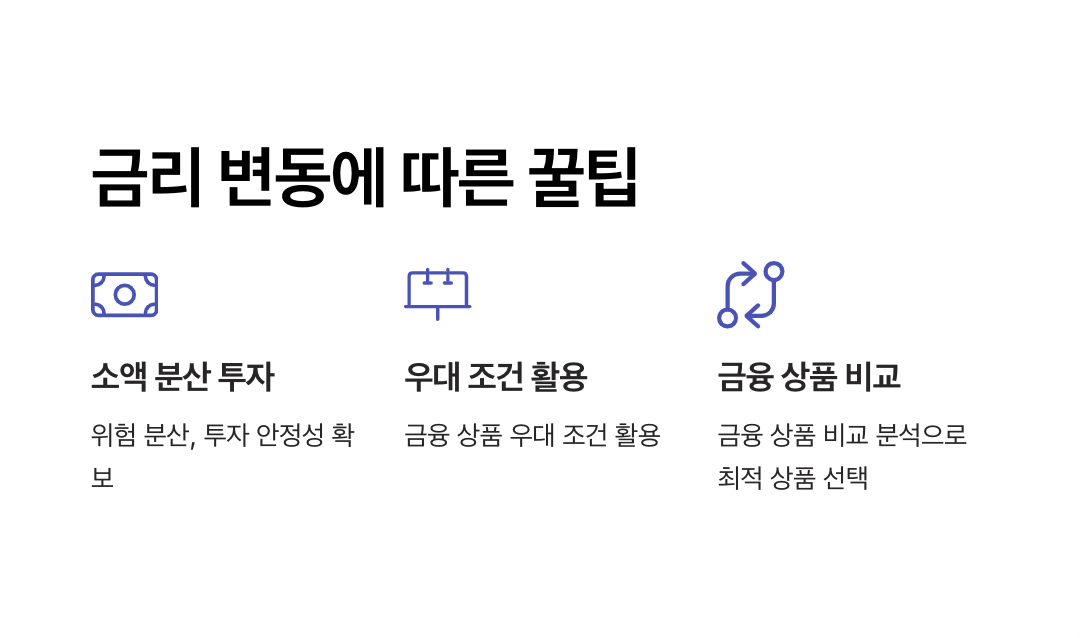 - 소액 분산 투자: 금리 변동 리스크를 줄이기 위해 다양한 상품에 소액으로 분산 투자.