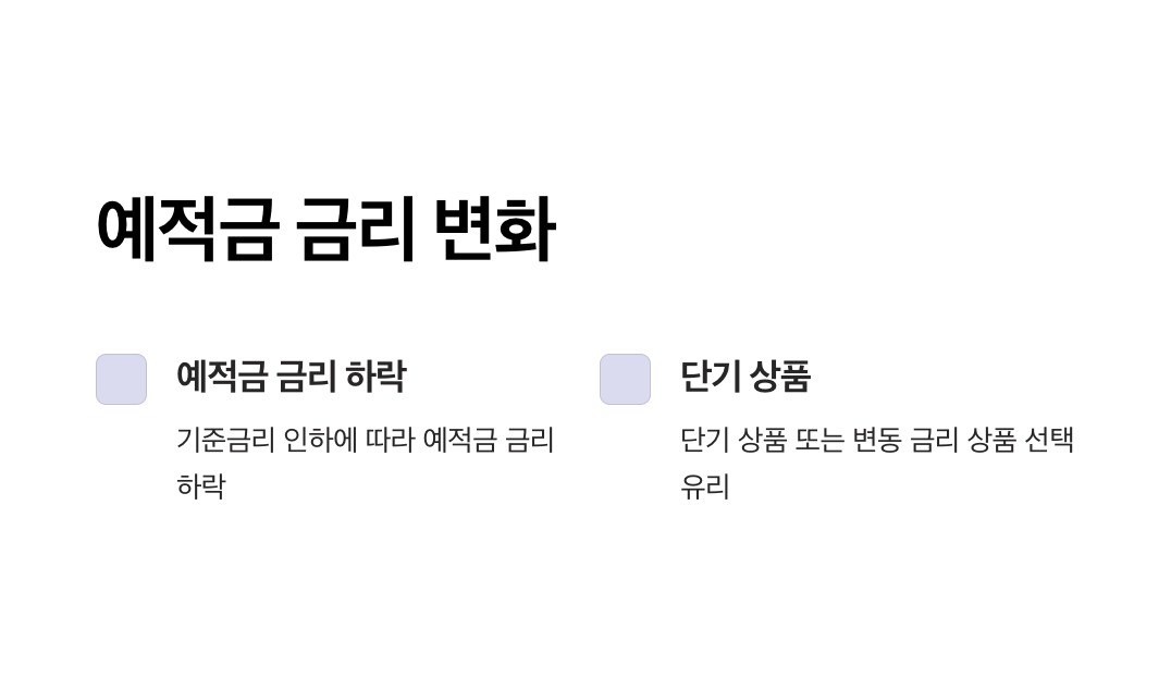 - 금리 인하 시 장기 예금보다 단기 적금이 유리.
