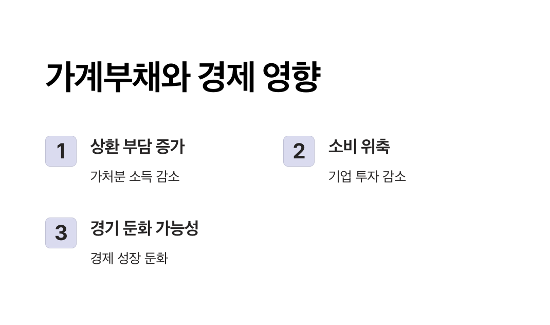 월 상환액 증가로 가처분 소득이 감소해 소비 여력이 줄어듭니다. - 경제 둔화: