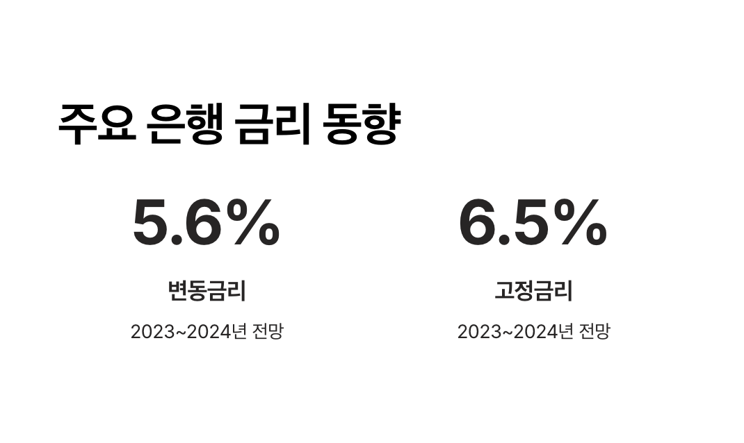 기준금리가 0.5% 인상될 경우 변동금리는 평균 5.5~6.0%, 고정금리는 6.5% 이상 도달 예상.