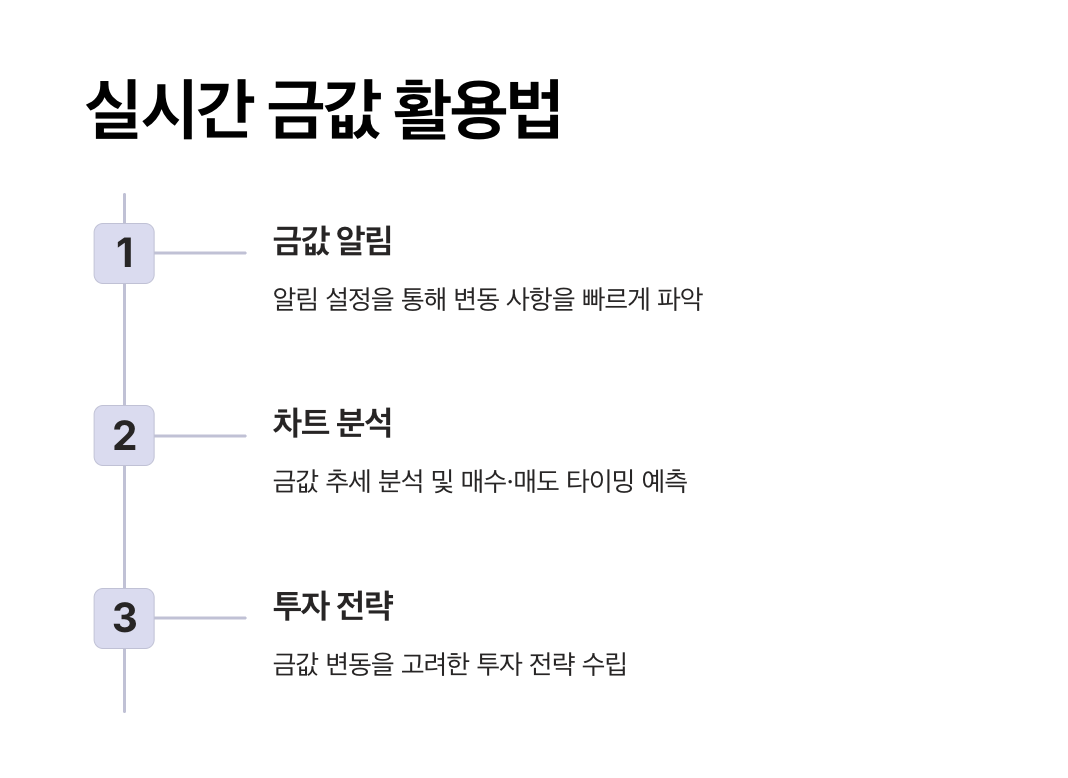 금값 변동 요인을 이해하고, 실시간 금값 데이터를 활용해 투자 전략을 구체적으로 세울 수 있습니다.